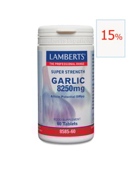 Complemento a base de extracto de Extracto de ajo seco (1650 mg) que mantiene un potencial de alicina de 5500 mcg.