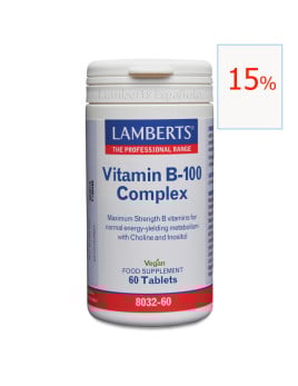 Vitamina B 100 complex. 60 tabletas. Con Vitamina B que contribuyena l metabolismo energético normal, Colina y Myo-inositol.