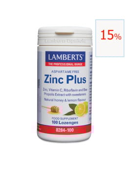 Zinc Plus con Vitamina C, Riboflavina, Extracto de Propóleo de abejas, Miel y Edulcorantes.