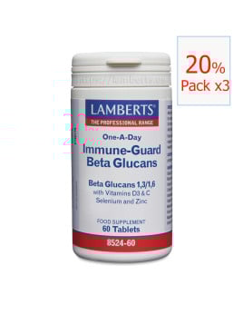 Complemento a base de betaglucanos, vitamina D, y C y minerales Selenio y Zinc.